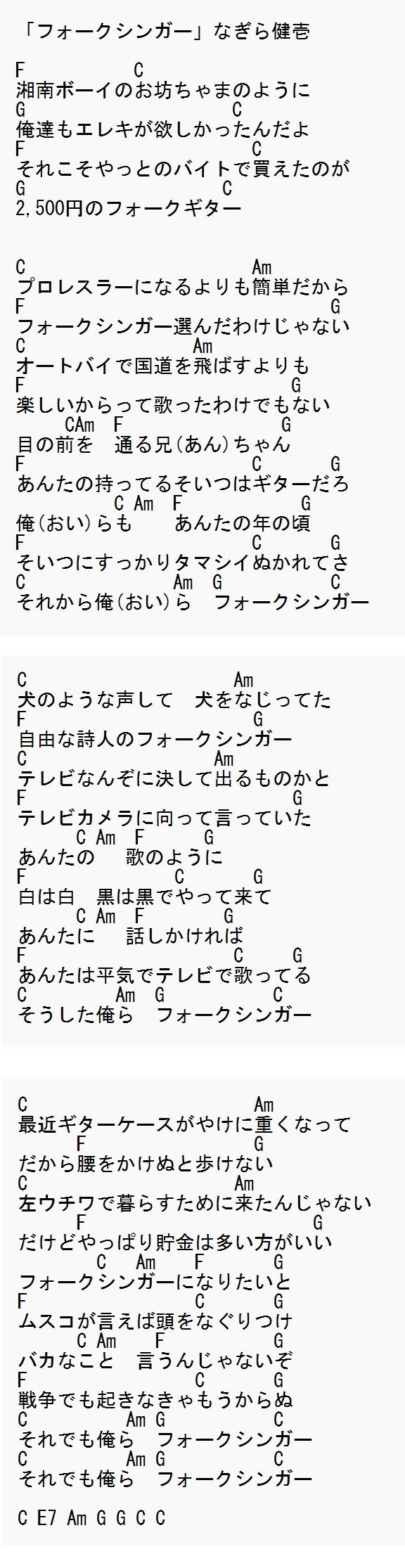 フォークシンガー:なぎら健壱
