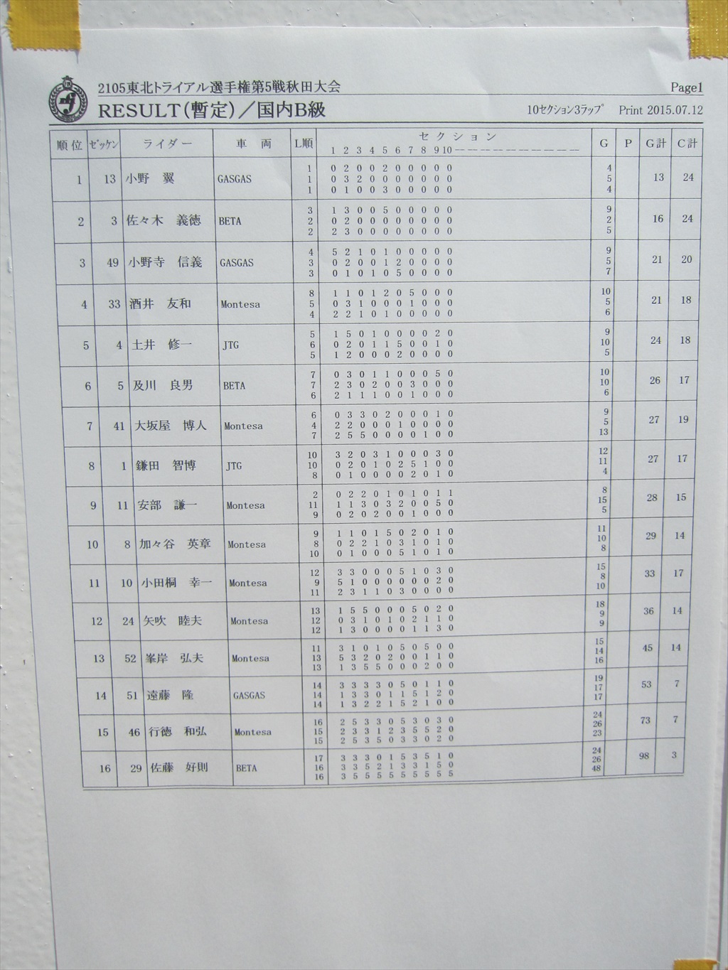 結果の張り紙 エンジョイクラス NBクラス NAクラス IBクラス