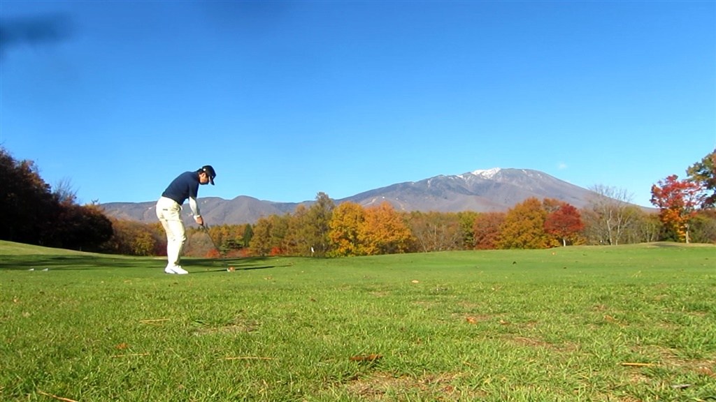ゴルフ場までの道中にある気温の表示の看板のどこかのひとつはマイナス1度を表示してました。こりゃ~今日のゴルフは寒くて大変そうだなぁ・・・大丈夫かなぁ・・・って思ったんだけど、スタート直後は寒かったんだけど、ちょっと時間がたったらもう上着がいらないくらいの陽気になって、岩手山がとってもきれいで紅葉もとってもきれいでおねえちゃんもそこそこきれいで^m^